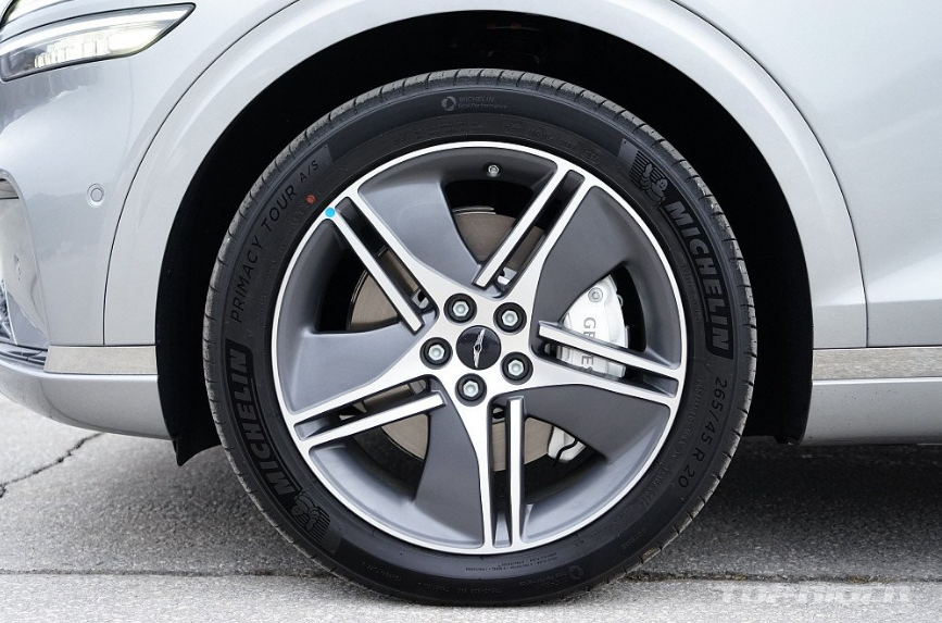 전체적인 외관 디자인은 전기차임을 내세우지 않는 분위기입니다. 새로운 20인치 휠의 디자인도 그렇습니다. 다만 휠 내부가 터빈형 디자인인데, 좌우의 방향성이 다른 점은 아쉬운 부분입니다. 특히 제네시스 전기차의 후면 범퍼 디자인은 여전히 갈피를 잡지 못하고 있습니다. 종합적인 디자인은 좋습니다.