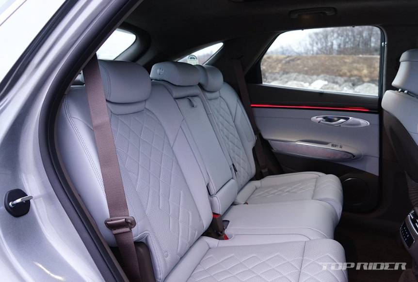 실내공간은 일반적인 패밀리카로 사용하기에 부족하지 않은 구성입니다. 다만 GV70 내연차를 경험했다면 바닥이 살짝 높게 느껴질 수 있습니다. GV70 전기차는 부분변경을 거치며 시동 버튼을 1회 누른 '파워 온' 모드를 지원해 냉난방과 실내 V2L 등 주행 외의 모든 기능을 지원할 수 있다고 합니다.