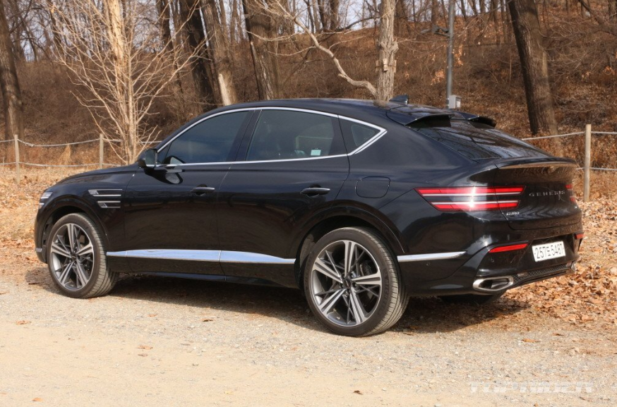 차체를 가로지르는 아치형 라인인 파라볼릭 라인으로 볼륨감이 강조됐으며, 쿠페 전용 20인치 혹은 22인치 휠이 제공된다고 합니다. 후면부 LED 면 발광 테일램프는 하단 램프보다 상단 램프가 길어 SUV와 차이가 있습니다. 트렁크 등 전체적인 후면부 모습은 제네시스 G80가 연상됩니다.