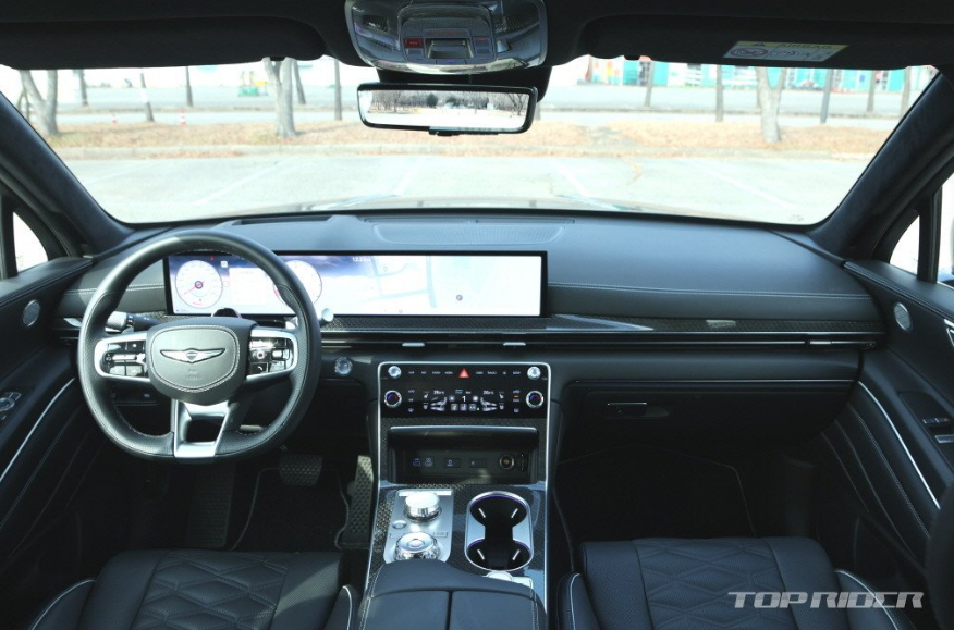 GV80 쿠페에 아쉬운 부분도 있습니다. 통합형 디스플레이가 탑재되면서 정서적인 시트 포지션을 잡으면 스티어링 휠이 계기판을 가립니다. 이는 제네시스 신형에서 주로 보이는데, 개선이 필요해 보입니다. 1만 3000km를 주행한 시승차임을 고려해도 실내 트림에서 잡소리가 발생합니다.