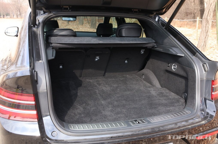 측면부는 매끄럽게 떨어지는 루프라인과 후면부 유리창 등으로 쿠페 디자인이 구현됐습니다. 다만 루프라인이 X6, GLE 쿠페 대비 비교적 완만한데, 2열 헤드룸 공간 확보를 위함으로 판단됩니다. 실제로 2열 헤드룸 공간이 경쟁 모델과 비교해 여유롭습니다. 디자인 측면으로는 아쉽습니다.