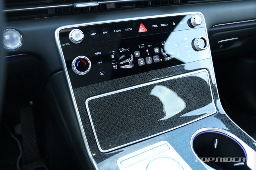 GV80 쿠페 실내에는 27인치 통합형 와이드 디스플레이, D컷 스티어링 휠, 카본 가니쉬, 전용 패턴과 스티치가 포함된 시트, 풀터치식 공조기 등이 배치됐다고 합니다. GV80 쿠페는 5인승으로만 운영됩니다. 터치식 공조기는 초기형 GV80와 비교해 직관적인 사용이 가능한데, 지문은 남습니다.