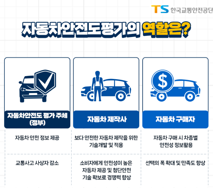 자동차안전도에 대한 정보를 소비자에게 제공하고 제작사로 하여금 안전도가 높은 자동차를 제작하도록 유도하기 위해 새로 출시되는 신차에 대해 자동차의 충돌 안전성 등 안전도를 평가하는 제도입니다.