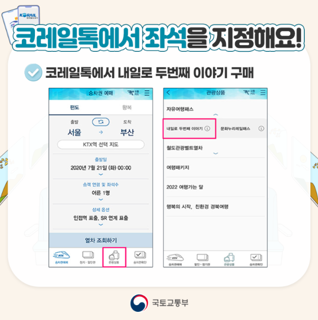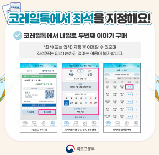 ■ 코리일톡에서 내일로 두번째 이야기 좌석 지정
