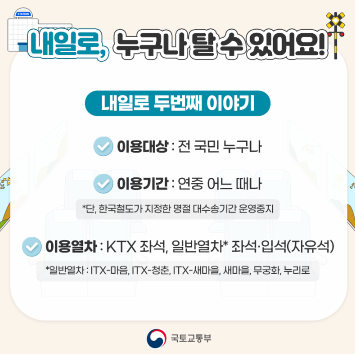 내일로는 누구나 탈 수 있습니다.