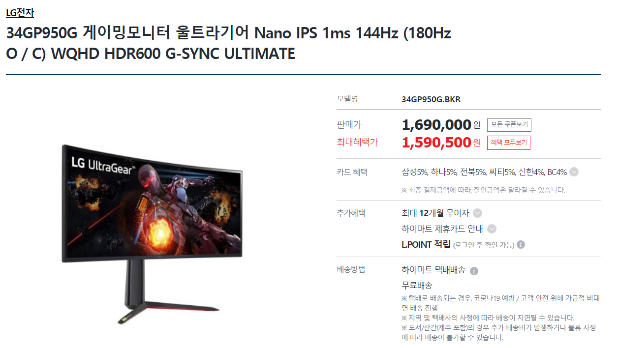 LG전자가 게이밍 모이터 'LG 울트라기어' 34형 신제품(모델명: 34GP950G)을 출시한다고 합니다.