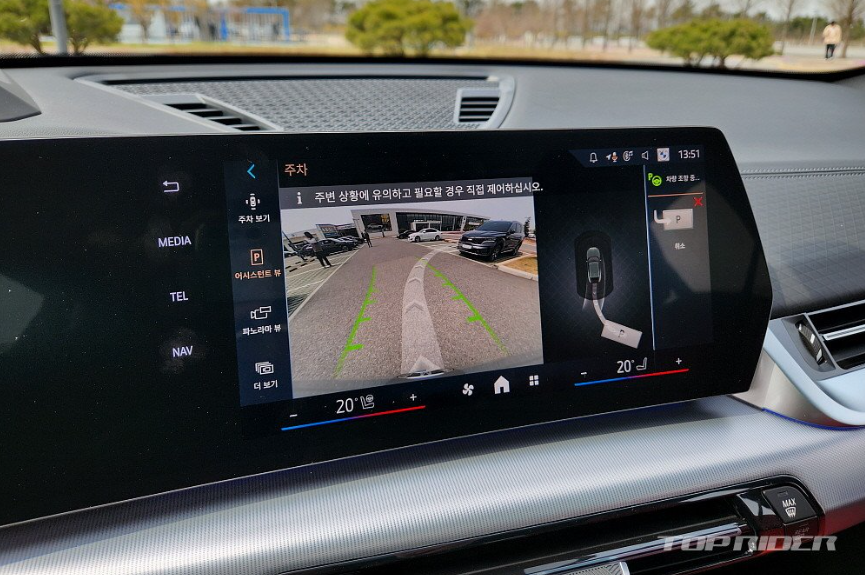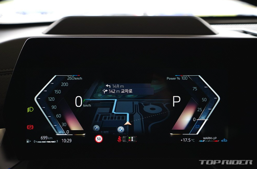 드라이빙 어시스턴스 프로페셔널 적용으로 어댑티브 크루즈컨트롤 선택 시 차선유지 면에서 좋은 모습을 보여줍니다. 해상도 좋은 디스플레이와 BMW 라인업이 동일한 그래픽을 사용해 엔트리 모델의 아쉬움이 없습니다. 헤드업 디스플레이와 중앙 모니터는 다소 작은 버전입니다.