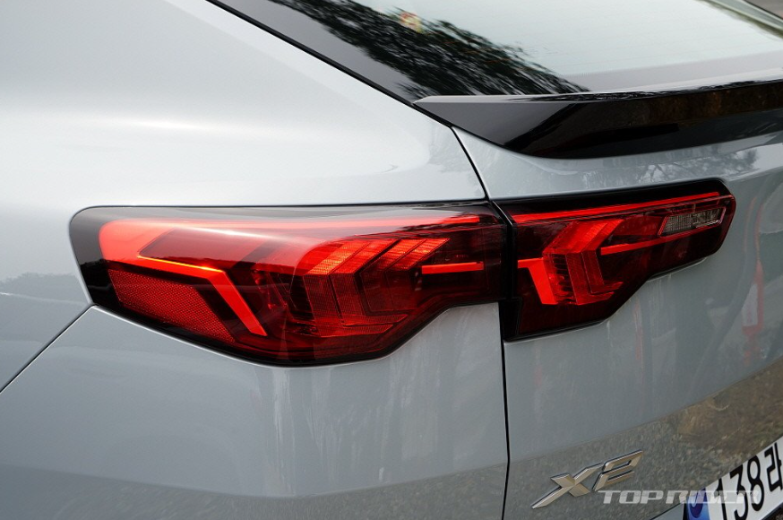 X2의 전장 4555mm는 X1의 4445mm와 비교해도 110mm 깁니다. 완만한 루프를 확보하기 위함으로 리어 오버행이 길어진 만큼 전장이 길어졌습니다. 때문에 쿠페형 SUV 중에서도 큰 560리터입니다. BMW의 쿠페형 SUV, SAC 디자인에서 후면부를 완전히 다르게 가는 점은 긍정적입니다.