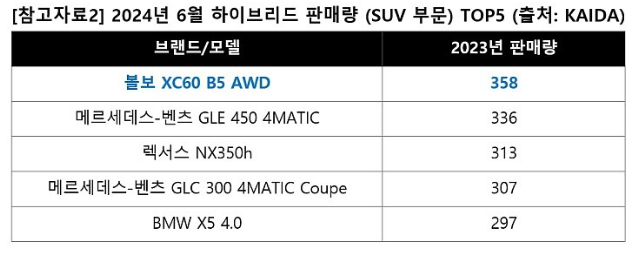 XC60 2024년 6월 하이브리드 SUV 판매량 1위 및 수입 SUV 전체 판매 1위