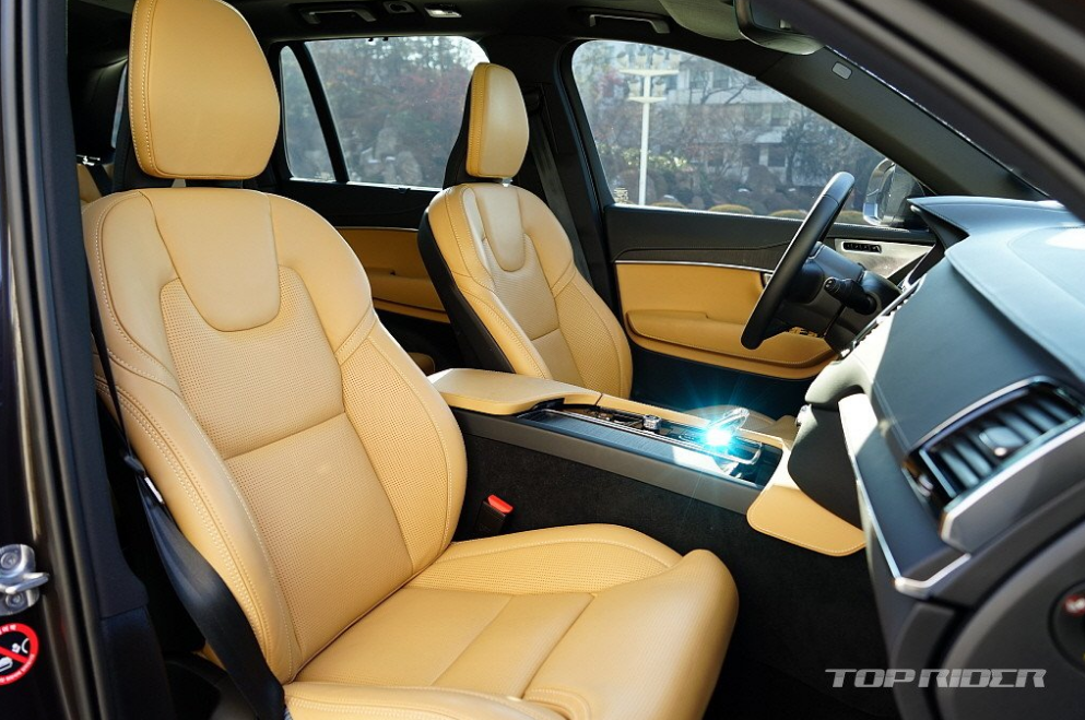 실내에서 눈에 띄는 부분은 1열부터 3열까지 풀사이즈 시트로 구성된 점입니다. SUV의 경우 1열을 제외한 2열과 3열은 다소 작거나 착좌감이 부족한 시트로 구성하는 경우가 있는데, 볼보의 시트 디자인은 큰 차이가 없습니다. 시트의 쿠셔닝과 소재, 구조는 볼보스럽게 이상적입니다.