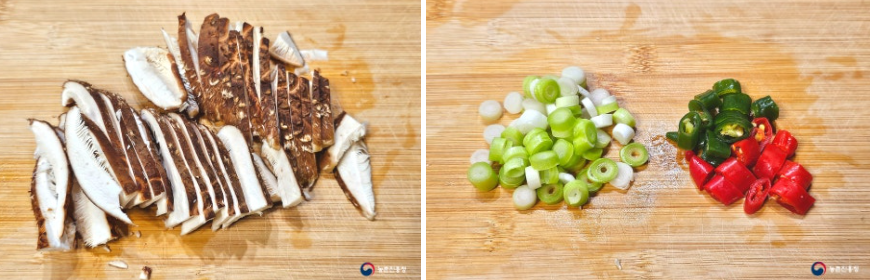 Tip : 마른 표고버섯은 찬물에 불렸다가 물기를 꼭 짜 사용해 줍니다.