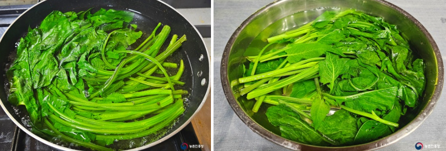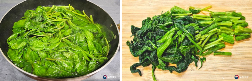데쳐 여러 번 헹궈준 후 지퍼백에 한 번에 먹을 양만큼만 물과 함께 담아 밀봉해 냉동 보관하시면 됩니다. 필요할 때 해동해 나물로 볶아먹거나 밥 또는 국으로 활용하면 좋습니다.