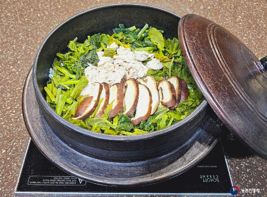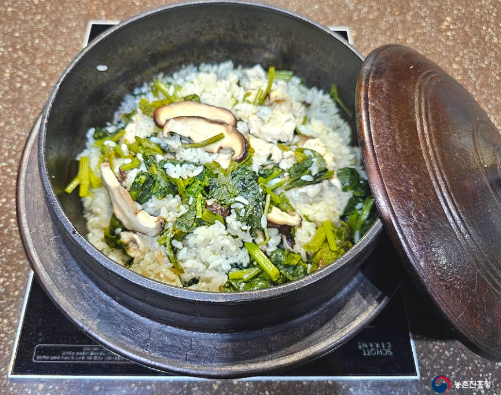 10. 뜸을 들인 뒤 뚜껑을 열면 구수한 향이 가득한 '닭가슴살 곤드레밥'이 완성됩니다.